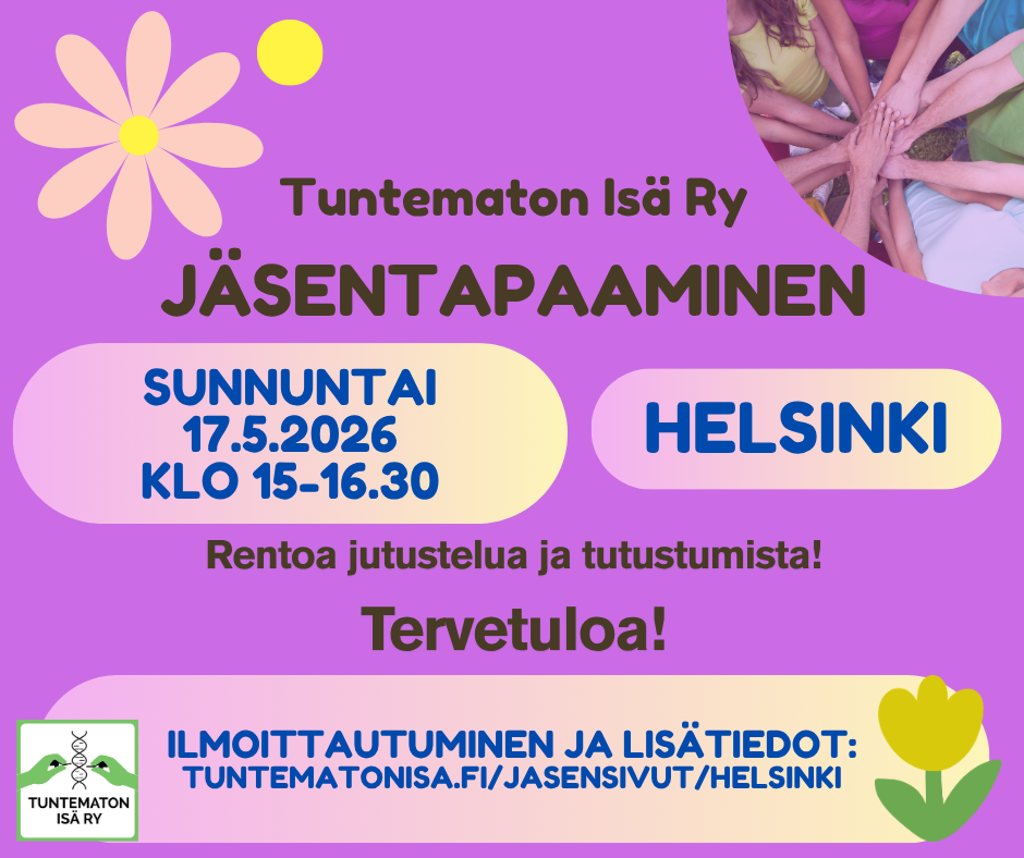Onko isäsi tuntematon? Onko sinulla vastauksia vailla olevia kysymyksiä? Haluaisitko kuulla vertaisen tarinan? Haluaisitko vaihtaa ajatuksia tai vain kuunnella aiheesta luottamuksellisesti? Tule…