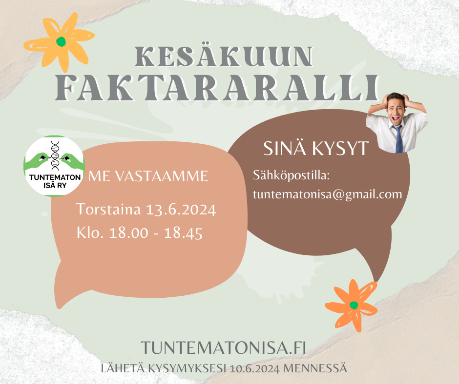 Faktaralli etäyhteyksin yhdistyksen jäsenille torstaina 13.6. klo 18 - 18.45!