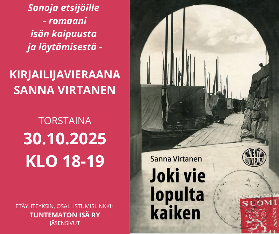 To 30.10.2025 klo 18-19 Sanna Virtanen: Sanoja etsijöille - romaani isän kaipuusta ja löytämisestä